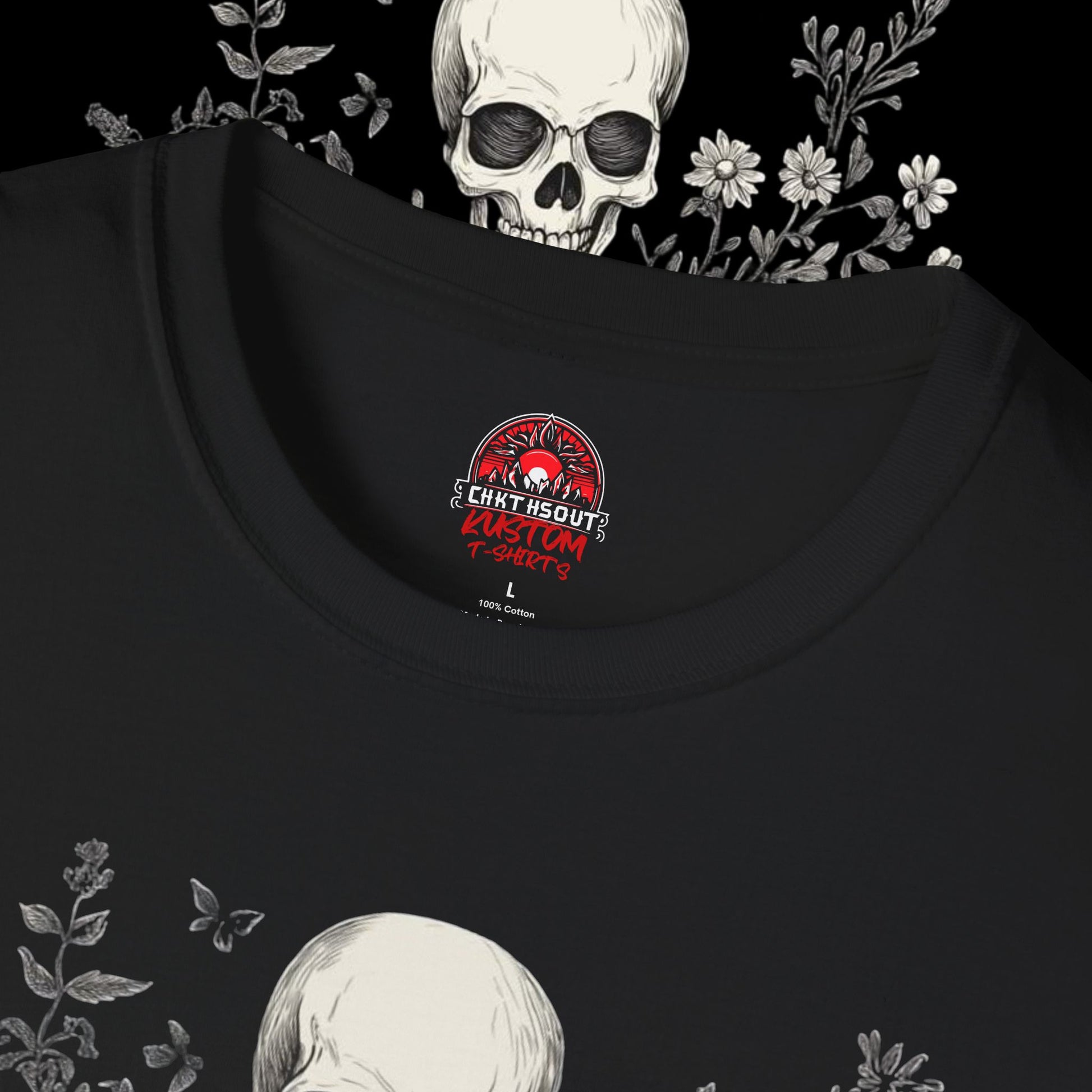 Introducing our captivating Unisex T-Shirt, designed to invoke a sense of whimsy and mystery. This tee features a unique skeleton motif intertwined with delicate flowers, perfect for those who appreciate a blend of dark charm and nature. Ideal for casual outings, music festivals, or cozy nights in, it adds a touch of character to any wardrobe. This shirt resonates with fans of gothic aesthetics, vintage trends, and anyone looking to stand out. It's a fantastic gift for Halloween, Day of the Dead, or simply as a thoughtful treat for a friend who loves the unconventional.